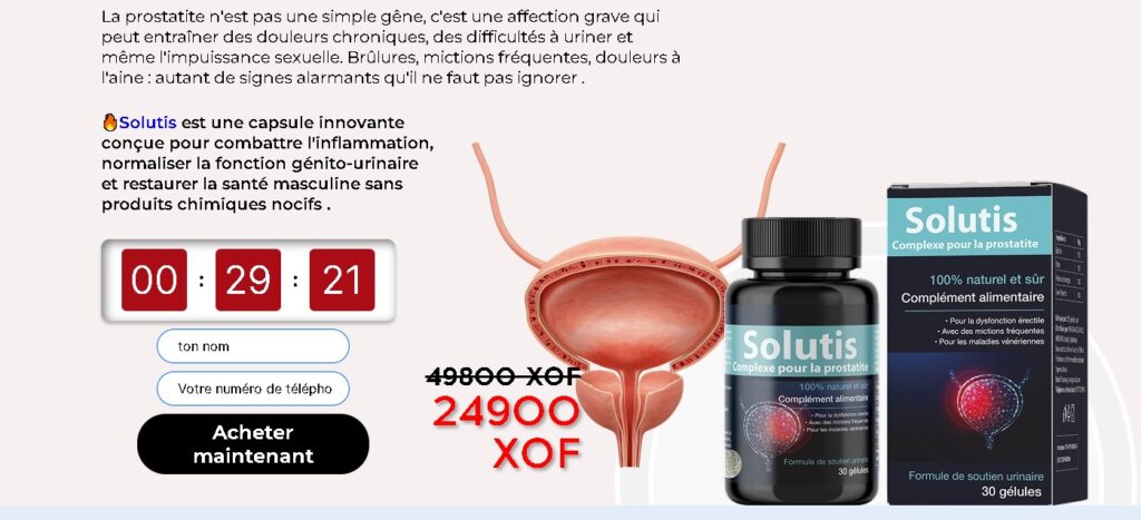 Dans ce contexte, il est essentiel de proposer une solution sûre, moderne et adaptée aux besoins réels des hommes. Solutis est un complément alimentaire développé pour soutenir le bon fonctionnement de la prostate, améliorer le confort urinaire et contribuer au bien-être global masculin.